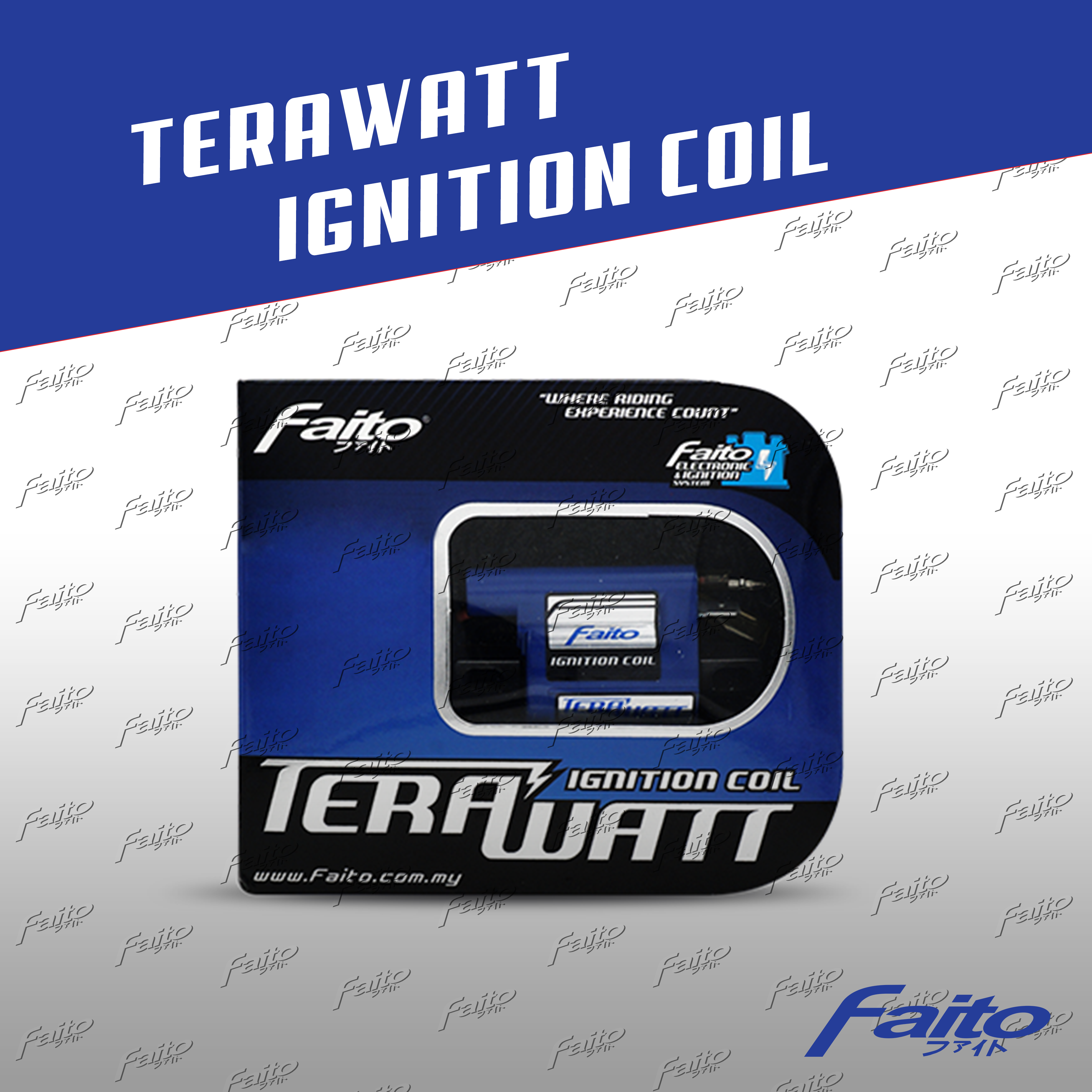 The ignition coil functions to change the voltage that comes out of the battery by 12V to tens of thousands of volts after it comes out of the ignition coil to create electric sparks by the spark plug. The TERAWATT Faito coil is created using pure copper wire winding to produce a voltage of up to 40,000 Volts. This coil is suitable for use in 4 stroke motorbike carburetors.
